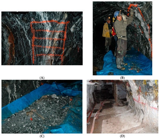 - Dominy, S.C.; Platten, I.M.; Fraser, R.M.; Dahl, O.; Collier, J.B. Grade control in underground gold vein operations: The role of geological mapping and sampling. In Proceedings of the International Mining Geology Conference, Perth, Australia, 17–19 August 2009; Australasian Institute of Mining and Metallurgy: Melbourne, Australia, 2009; pp. 291–307. [Google Scholar]