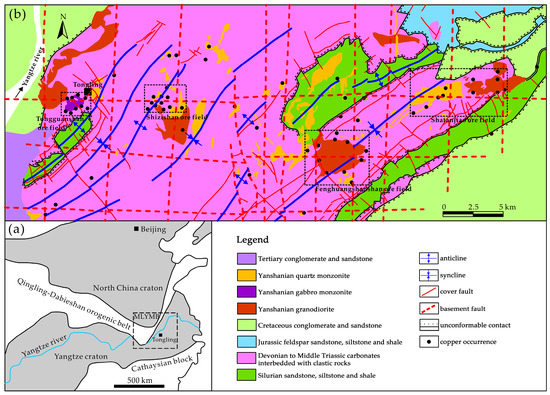 - 321 Geological Team. Structural Maps of Tongling Area; Bureau of Geological and Mineral Resources of Anhui Province: Hefei, China, 1989; pp. 1–33. [Google Scholar]