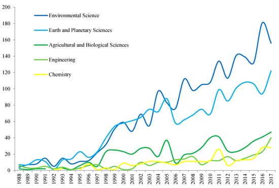 Trend in the subject categories of MW articles published from 1988 to 2017.