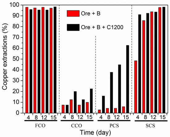 3.4. The Copper Phase Analysis of Bioleached Residues