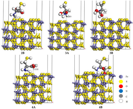 3.3. Cysteine Adsorption on the Pyrite (1 0 0) Surface