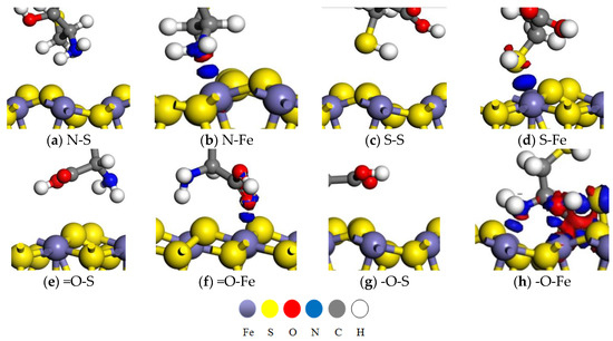 3.5. Electron Density Difference of the Interaction between Cysteine and Pyrite (1 0 0) Surface