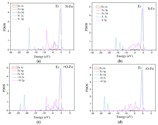 3.6. PDOS of the Interaction between Cysteine and Pyrite (1 0 0) Surface