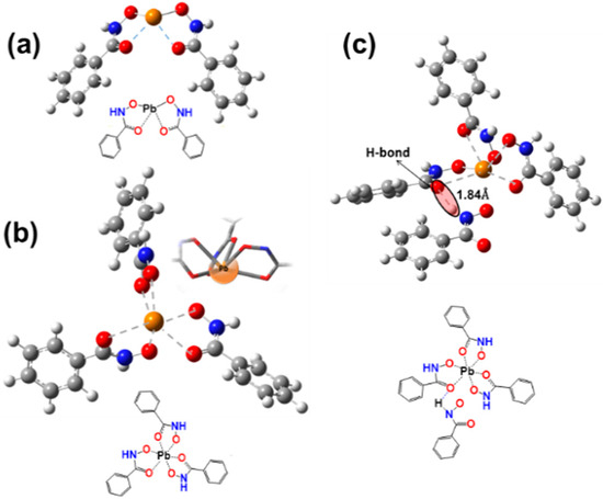3.2.2. Single Pb–BHA in Aqueous Solution