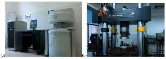 Test apparatus (a) low-field NMR system and (b) a uniaxial compressive strength testing machine.
