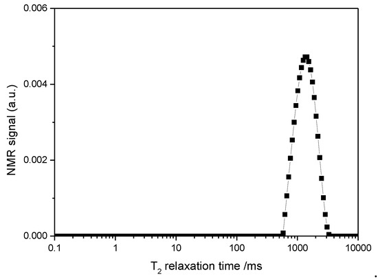 Before the test, the T2 relaxation time of pure water was measured and presented in Figure 3. The figure shows that the T2 relaxation time of pure water is about 800–1600 ms.