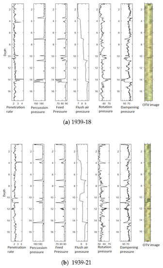 The cleaned MWD data and the corresponding OTV image of the boreholes 1939-18, 1939-21 and 1941-7 are illustrated in Figure 8.