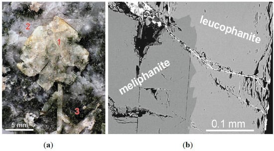 - Kostyleva, E.E. Leucophan, Melinophan. In Minerals of Khibiny and Lovozero Tundras; Izdatel’stvo Akademii Nauk SSSR: Moscow, Russia, 1937; p. 243. (In Russian) [Google Scholar]