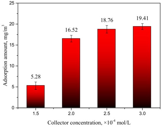 The amount of adsorbed collector as a function of collector concentration at pH 9.
