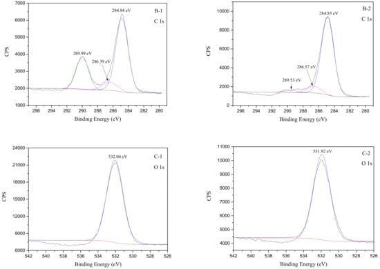 XPS experiments were conducted with a PHI 5000 Versa Probe II (PHI5000, ULVAC-PHI, Tokyo, Japan) equipped with an Al target. Smithsonite samples (−5 μm) were treated with collector solution at a concentration of 3 × 10−4 mol/L. The pH of the solution was adjusted to 9. Then, there was stirring for 30 min and sitting for 2 h. After the adsorption achieved equilibrium, the suspension was filtered and air-dry-prepared for XPS determination. Subsequently, MultiPak Spectrum software was used to analyze the spectra and calculate surface atomic ratios of the measured samples. All the spectra were adjusted on the basis of the standard C1s binding energy (284.8 eV) and were further fitted by the Gauss–Lorentz method.