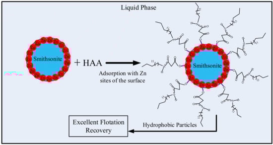 Depicting the proposed process for the adsorption of HAA molecules on the smithsonite surface.