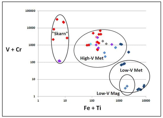 Thurein Taung V values at 102–421 ppm lie well below more extreme V values at 900–5500 ppm in nearby parts of the Mogok ruby field [11,13]. Thurein Taung Cr/V ratios, however, range up to 37 and suggest links with the Mogok V-rich ruby province. In comparison with Thurein Taung, the Mong Hsu ruby sets include higher V values up to ~1012 ppm and range into even higher Cr/V ratios (Mong Hsu 1, 1.2–37.1, av. 11.3; Mong Hsu 2, 4.0–59.5, av. 18.0).
