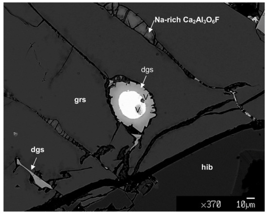 | Dgs * | Spinel | Spinel | Spinel | Grs *** | Grs | Hib | Hib **** | Ca2Al3 O6F | Pv ** | |