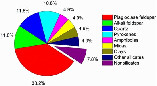 Silicates are extremely important materials, both naturally and artificially, for the development of science and technology. Although there is no known way of accurately ascertaining the abundance of every mineral within the earth’s crust, based on a rough estimate, silicates comprise most of the earth’s crust, as shown in Figure 1 [1]. In addition, silicates are the main component of ceramics, Portland cement, and glass. Silicate-based materials as amendments such as zeolites, clays, and cementitious materials show increasing interest in the stabilization/solidification of heavy-metal contaminated soils or environments [2,3,4].