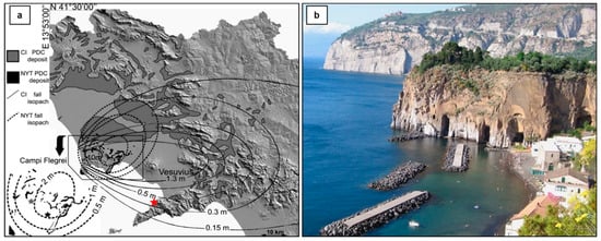 - Cinque, A.; Robustelli, G. Alluvial and coastal hazards caused by long-range effects of Plinian eruptions: The case of the Lattari Mts. After the AD 79 eruption of Vesuvius. Geol. Soc. Spec. Publ. 2009, 322, 155–171. [Google Scholar] [CrossRef]