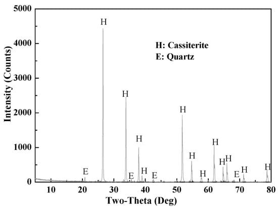 Quartz (SiO2) is the predominant gangue mineral in cassiterite ores, which cannot be separated perfectly by beneficiation combined methods, such as gravity concentration and froth flotation [21,22]. Before used as raw materials, the cassiterite concentrates should be firstly pretreated by oxidation roasting–acid leaching process to remove the impurity elements, including Fe, As, S, Pb, Sb, etc. [23,24]. However, the quartz (SiO2) is very hard to be removed during the pretreatment process.