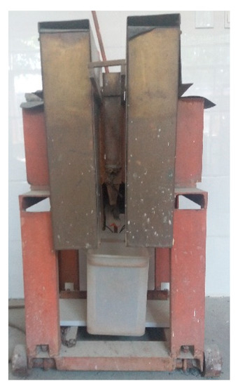 The magnetizing treatment of kerosene was conducted with a splint-type magnetic separator from the Northwest Institute of Non-Ferrous Geology. Firstly, the magnetic field intensity was adjusted to the desired value; then, 200 mL kerosene was added into the feeding funnel; meanwhile, the MK was collected using 500 mL beakers at the bottom of the magnetizing device. The process of the magnetizing treatment of kerosene was implemented only once. The retention time of the magnetizing treatment was about 3 s. The collected MK was used for the surface tension and flotation tests. The magnetizing device is shown in Figure 1.