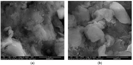 Scanning electron microscopy (SEM) images of (a) Na-bentonite and (b) HQ-bentonite.