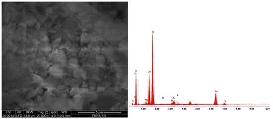 SEM images and EDX of U(VI) ions loaded HQ-bentonite.