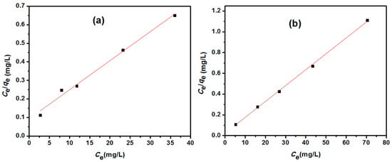 The Langmuir equation can be expressed by the linearized equation (Equation (6)) [12].