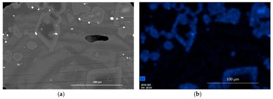 For SEM-EDX (Scanning Electron Microscopy–Energy Dispersive X-ray Spectroscopy) analysis, the samples were embedded in a low-viscosity epoxy resin and gradually polished down to ¼-μm diamond powder grit size. The samples were coated with Pt-Pd prior to microscopic analysis. Morphological observations were carried out by an SEM microscope FEI NOVA NANOSEM 450 (FEI, Brno, Czech Republic) with EDX analyzer BRUKER QUANTAX 200 (Bruker, Mannheim, Germany) with SDD detector.