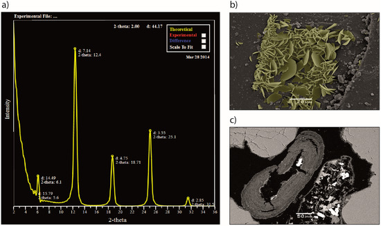 - Deer, W.A.; Howie, R.A.; Zussman, J. Rock Forming Minerals: Layered Silicates Excluding Micas and Clay Minerals; Geological Society: London, UK, 2009. [Google Scholar]