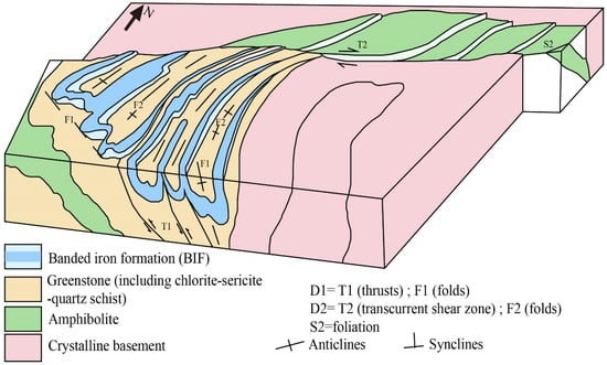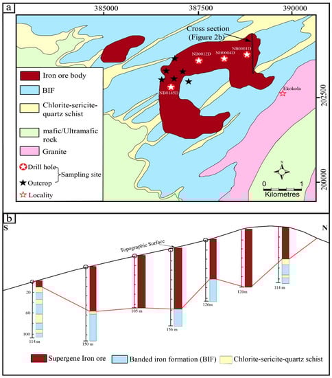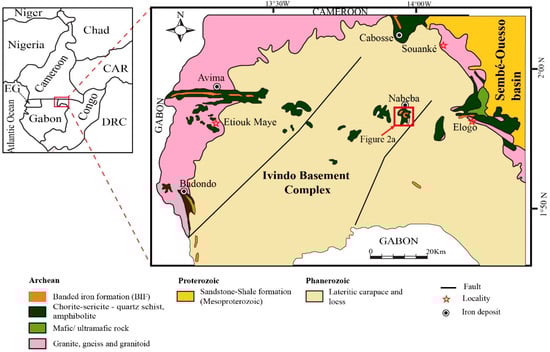 - Gatsé Ebotehouna, C.; Issambo Dom, S. Geological Knowledge of the Iron Formation of the Nabeba Iron Deposit; Northwestern Republic of Congo: Brazzaville, Republic of Congo, 2016; Unpublished. [Google Scholar]
