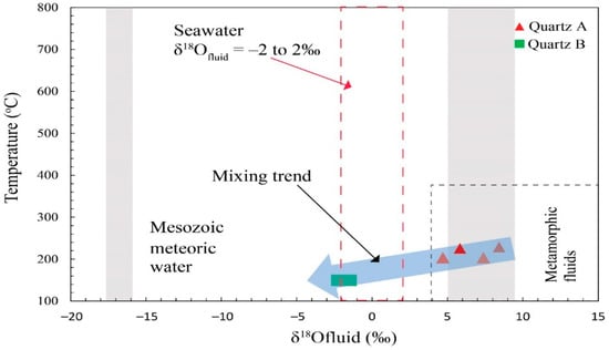 - Clayton, R.N.; O’Neil, J.R.; Mayeda, T.K. Oxygen isotope exchange between quartz and water. J. Geophys. Res. 1972, 77, 3057–3067. [Google Scholar] [CrossRef]