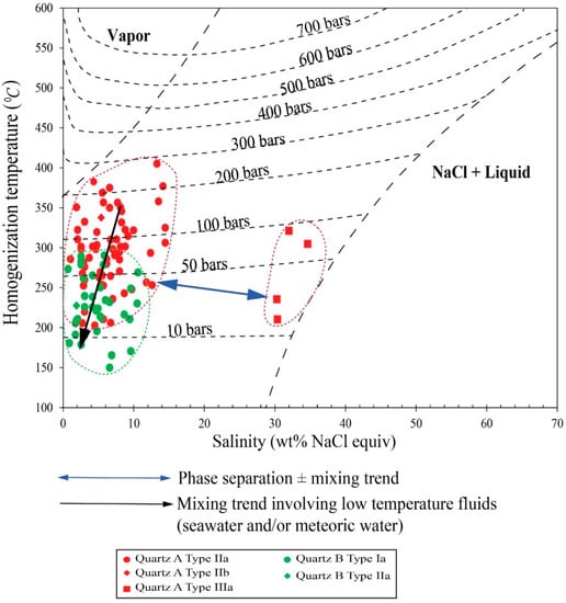 - Roedder, E.; Bodnar, R. Geologic pressure determinations from fluid inclusion studies. Annu. Rev. Earth Planet. Sci. 1980, 8, 263–301. [Google Scholar] [CrossRef]