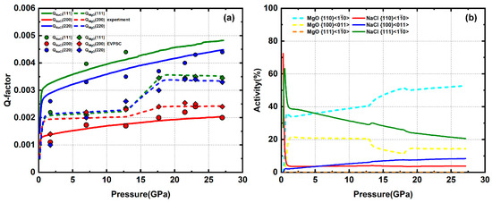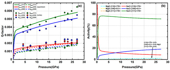 (a) Experimental and modeled Q-factors of pure NaCl; (b) slip system activity.