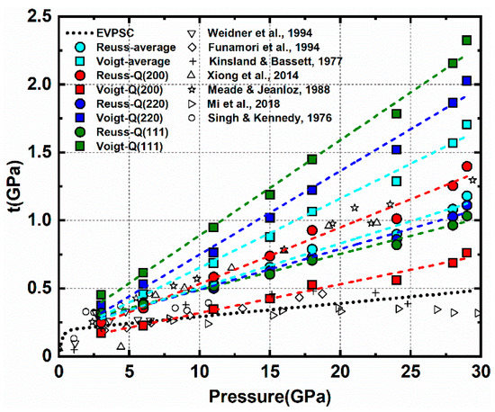 - Meade, C.; Jeanloz, R. Yield strength of MgO to 40 GPa. J. Geophys. Res. Solid Earth 1988, 93, 3261–3269. [Google Scholar] [CrossRef]