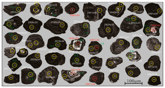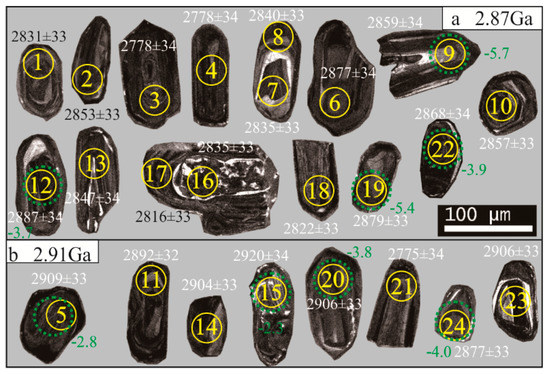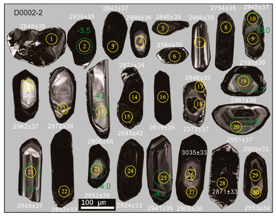 - Griffin, W.L.; Wang, X.; Jackson, S.E.; Pearson, N.J.; O’Reilly, S.Y.; Xu, X.; Zhou, X. Zircon chemistry and magma mixing, SE China: In-situ analysis of Hf isotopes, Tonglu and Pingtan igneous complexes. Lithos 2002, 61, 237–269. [Google Scholar] [CrossRef]