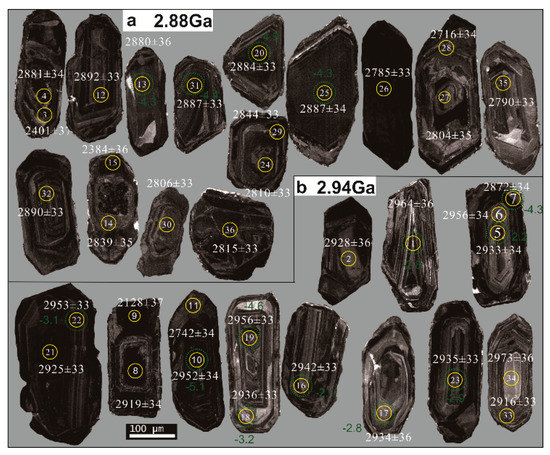 - Qiu, Y.; Gao, S.; Mcnaughton, N.J.; Groves, D.I.; Ling, W. First evidence of >3.2Ga continental crust in the Yangtze craton of south China and its implications for Archean crustal evolution and Phanerozoic tectonics. Geology 2000, 28, 11–14. [Google Scholar] [CrossRef]