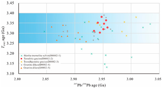 - Guo, J.L.; Gao, S.; Wu, Y.B.; Li, M.; Chen, K.; Hu, Z.C.; Liang, Z.W.; Liu, Y.S.; Zhou, L.; Zong, K.Q.; et al. 3.45 Ga granitic gneisses from the Yangtze Craton, South China: Implications for Early Archean crustal growth. Precambrian Res. 2014, 242, 82–95. [Google Scholar] [CrossRef]