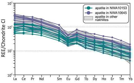 Birski, Ł.; Słaby, E.; Chatzitheodoridis, E.; Wirth, R.; Majzner, K.; Kozub-Budzyń, G.A.; Sláma, J.; Liszewska, K.; Kocjan, I.; Zagórska, A. Apatite from NWA 10153 and NWA 10645—The Key to Deciphering Magmatic and Fluid Evolution History in Nakhlites. Minerals 2019, 9, 695. https://doi.org/10.3390/min9110695