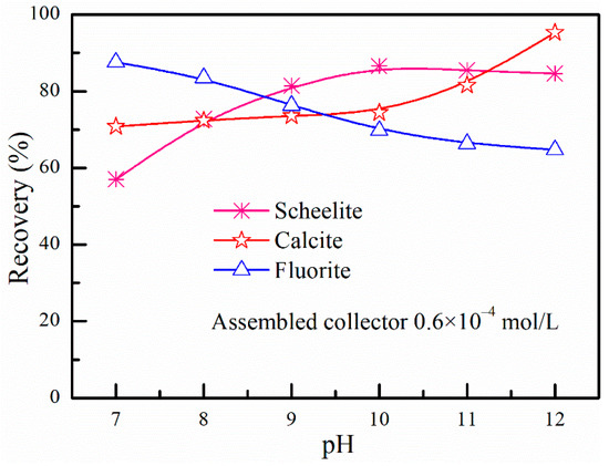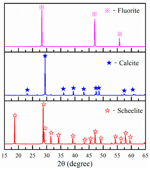 - Wang, J.; Gao, Z.; Gao, Y.; Hu, Y.; Sun, W. Flotation separation of scheelite from calcite using mixed cationic/anionic collectors. Miner. Eng. 2016, 98, 261–263. [Google Scholar] [CrossRef]