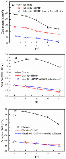 Kang, J.; Hu, Y.; Sun, W.; Gao, Z.; Liu, R. Utilization of Sodium Hexametaphosphate for Separating Scheelite from Calcite and Fluorite Using an Anionic–Nonionic Collector. Minerals 2019, 9, 705. https://doi.org/10.3390/min9110705