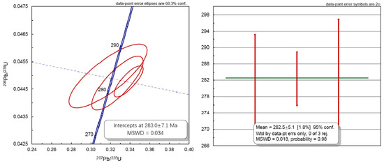 Group IV ages (~283 Ma) were apparently lower than the other three groups. This age is well-consistent with an age of 280.5 ± 4.3 Ma obtained from eclogite zircon rims by [85], which was thought to be dated the late exhumation movements after a greenschist facies metamorphism, since a greenschist facies Ar–Ar plateau age of 293.1 ± 1.7 Ma was reported by [83] for an epidote mica schist.