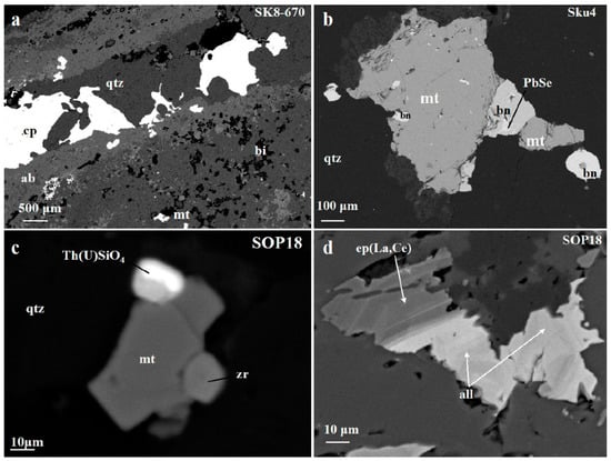 - Nadoll, P.; Mauk, J.L.; Hayes, T.S.; Koenig, A.E.; Box, S.E. Geochemistry of magnetite from hydrothermal ore deposits and host rocks of the Mesoproterozoic Belt Supergroup, United States. Econ. Geol. 2012, 107, 1275–1292. [Google Scholar] [CrossRef]