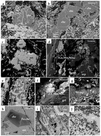- Economou-Eliopoulos, M. Apatite and Mn, Zn, Co-enriched chromite in Ni-laterites of northern Greece and their genetic significance. J. Geochem. Exp. 2003, 80, 41–54. [Google Scholar] [CrossRef]