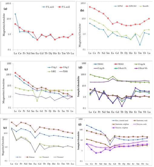 - Similarity between the REE patterns, including the clear Eu negative anomaly of magnetite separates from coastal black sand of Kos Island, may provide evidence of an andesitic source.