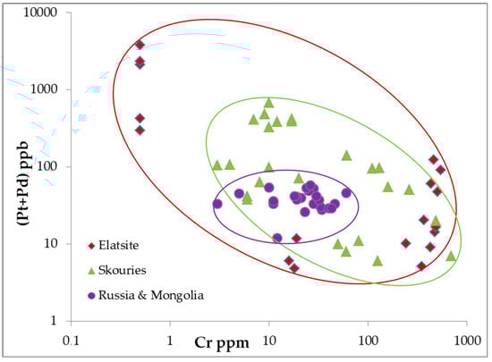 - Eliopoulos, D.G.; Economou-Eliopoulos, M.; Zelyaskova-Panayiotova, M. Critical factors controlling Pd and Pt potential in porphyry Cu–Au deposits: Evidence from the Balkan Peninsula. Geosciences 2014, 4, 31–49. [Google Scholar] [CrossRef]