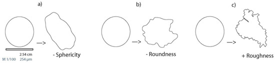- Barrett, P.J. The shape of rock particles, a critical review. Sedimentology 1980, 27, 291–303. [Google Scholar] [CrossRef]
