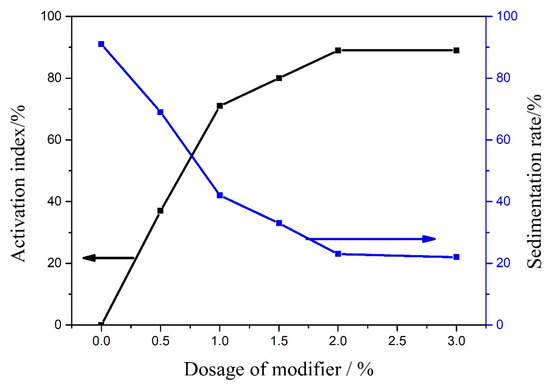 Influences of the modifier dosage on the activation index and sedimentation rate of CaCO3-TiO2.