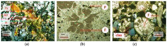 Texture, size, shape, chemical, and mineralogical compositions also affect the mechanical and physical properties of aggregates [59,60,61,62,63,64,65]. The aforementioned characteristics, as well as the degree of alteration, disintegration and deformation of aggregates, affect their quality and thus their suitability for use in various applications. Haraldsson [66], for example, noted that rhyolite can damage concrete structural elements through alkali-silica reactions. In fact, aggregates of rhyolitic composition have moderate to very poor qualities and may develop deleterious reactions if they contain non-weathered and/or altered glass in their matrix, and alteration minerals resulting from devitrification, such as argillaceous minerals and cryptocrystalline silica [67]. Haraldsson [66] also believes that basalt is the best rock type; however, its strength, durability and other properties deteriorate rapidly with increased alteration.
