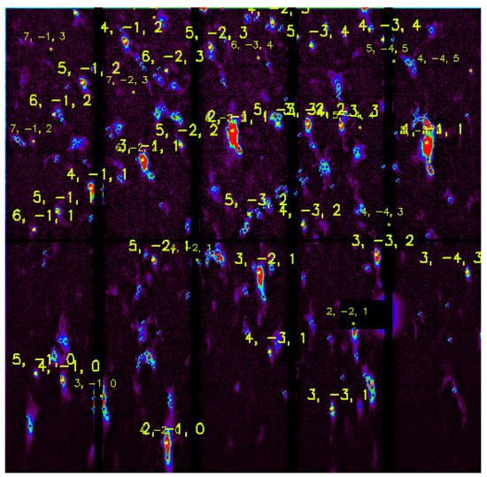 The Laue microdiffraction patterns of the studied specimen of platiniferous tetra-auricupride from the western Sayans are shown in Figure 4a,b and Figure 5, and listed in Table 2. The inferred unit-cell parameters of this phase are: a 2.790(1) Å, c 3.641(4) Å, with c/a = 1.305; its space group is P4/mmm.