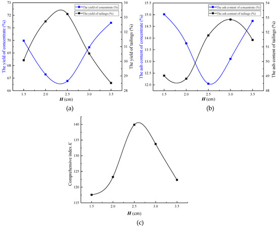 3.1. Effect of the Height of the Partition Plate (H) on the Separation Process