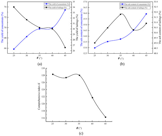 3.2. Effect of the Partition Plate Angle (θ) on the Separation Process