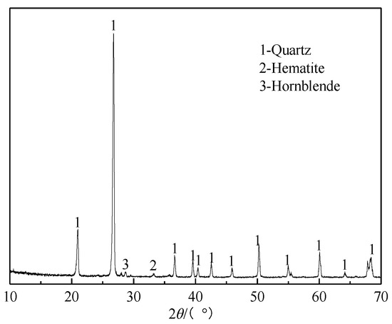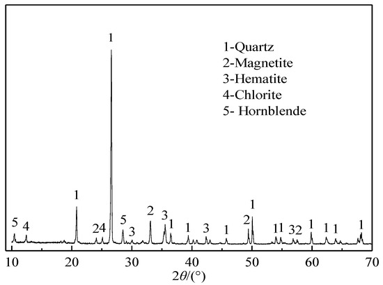 - Huang, X.Y.; Ni, W.; Zhu, L.-P.; Wang, Z.-J. Grinding characteristic of Qidashan iron tailings. J. Univ. Sci. Technol. Beijing 2010, 32, 1253–1257. [Google Scholar]
