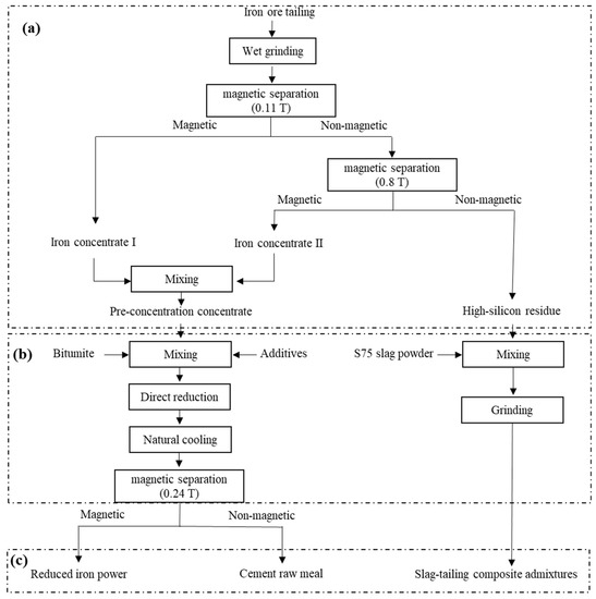 - Li, C.; Sun, H.; Bai, J.; Li, L. Innovative methodology for comprehensive utilization of iron ore tailings: Part 1. The recovery of iron from iron ore tailings using magnetic separation after magnetizing roasting. J. Hazard. Mater. 2010, 174, 71–77. [Google Scholar] [CrossRef]